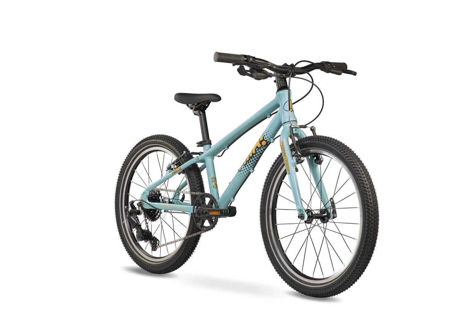 Detský 20" bicykel má široké plášte s mäkkým dezénom na pohodlnú jazdu v meste, na lesných cestách a na poľných cestách. Vďaka rýchloupínacím páčkam možno bicykle ľahko rozložiť na prepravu autom.